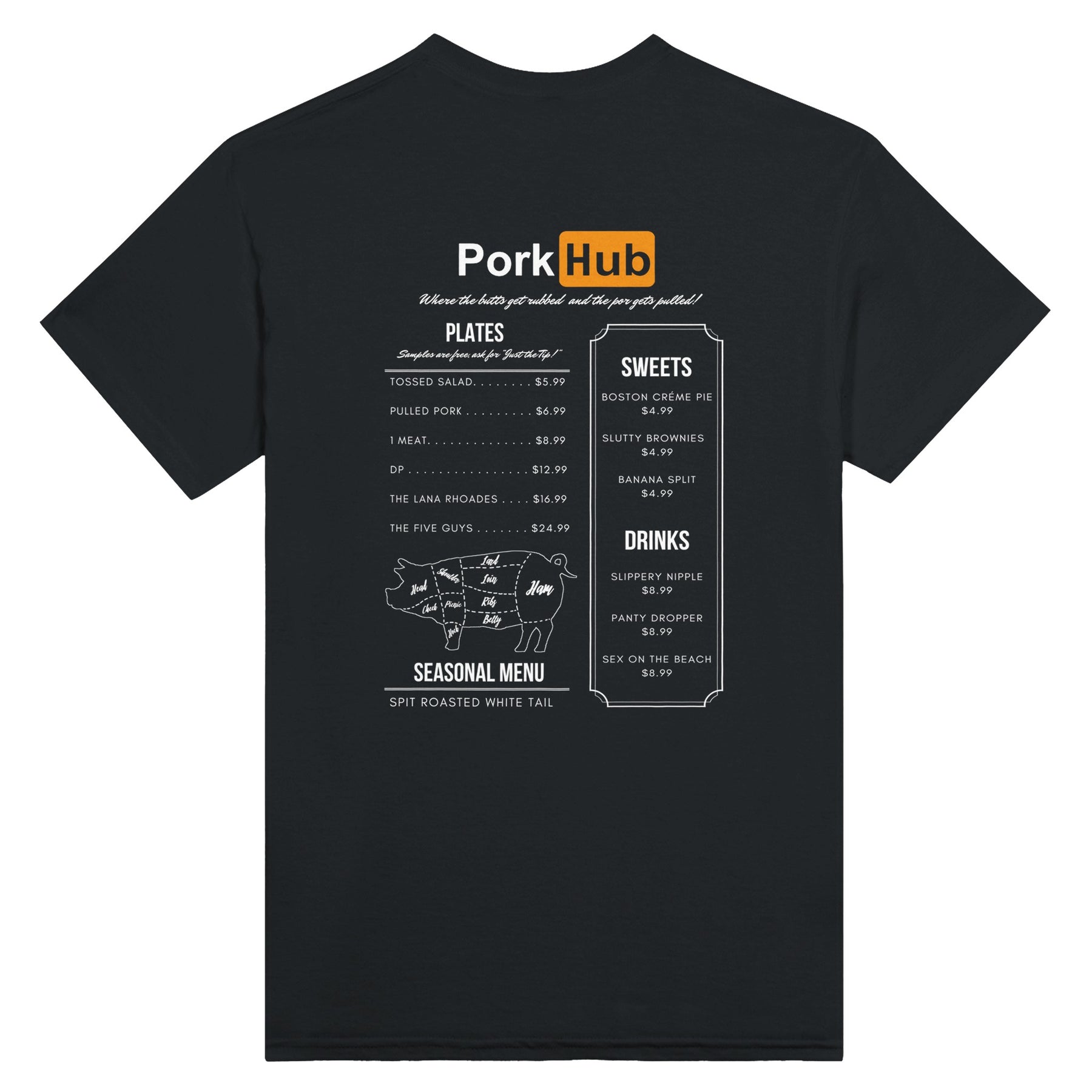 Experience ultimate comfort with PorkHub! In the heart of bustling city life, there's a humble street food vendor known for their mouthwatering barbecue ribs. Among the smoke and sizzle, a young designer finds inspiration. The savory aroma, the camaraderie of patrons, and the vendor's worn apron all spark an idea. Thus, "Sweat Meat" is born - a hoodie paying homage to the gritty charm and delicious flavors of urban street food culture. Soft, breathable fabric with modern design, reinforced stitching, and non-fading properties. Effortless style for all seasons. This heavyweight cotton t-shirt is a durable staple product with a classic fit. One of the most popular items, it has a relaxed style made for everyday and casual wear